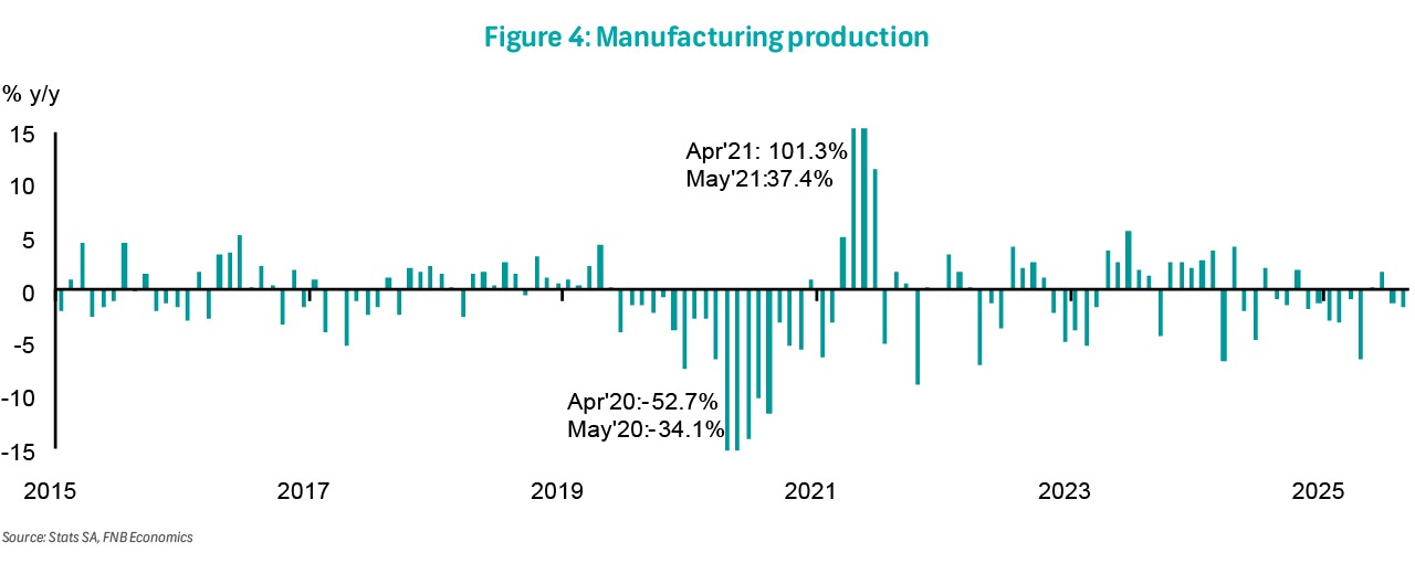 Manufacturing activity remained subdued in August, with production contracting by 1.5% y/y. The largest drag came from the basic iron and steel, non-ferrous metals, and machinery division (-5.9%, contributing -1.3ppts), followed by food and beverages (-3.0%, -0.7ppts). However, seasonally adjusted output rose by 0.4% m/m, partially offsetting declines of -0.8% in July and -0.1% in June. Encouragingly, the Manufacturing PMI rebounded to 52.2 in September, its highest level in nearly a year, signalling improved momentum, though business expectations remain cautious amid global economic uncertainty, a rise in imports of manufactured goods, and logistical constraints.