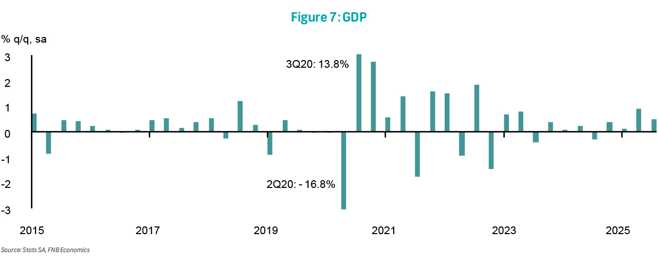 Also on Thursday, mining production data for January will be released. Mining production (not seasonally adjusted) expanded by 2.5% y/y in December, rebounding from a 2.4% decline in November. Seasonally-adjusted mining output declined by 1.2% m/m, following a 5.4% contraction in November. The largest positive contributors were iron ore and manganese ore, while PGMs and coal were the largest detractors. Overall, mining output declined by 0.5% q/q in 4Q25, suggesting that the mining sector dragged GDP growth in the final quarter of 2025.