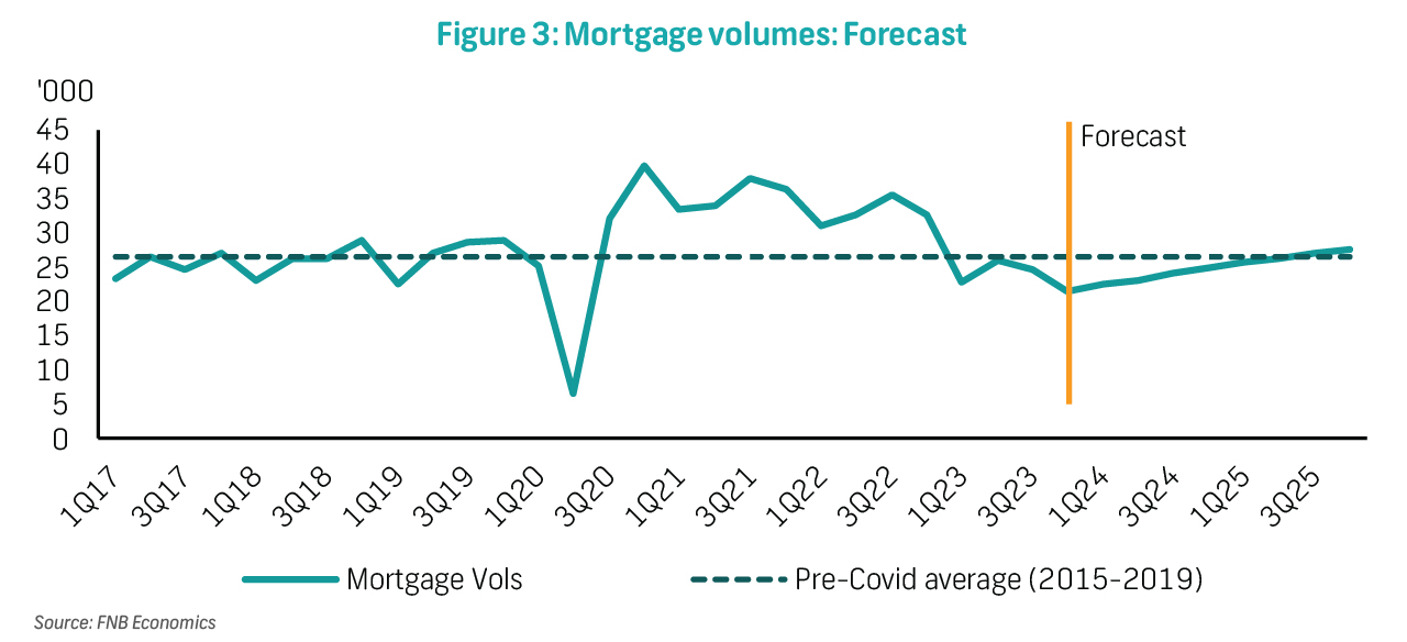 The affordable market: The buying-down effect, combined with stock shortages, helped sustain volumes and property price growth in lower priced segments in 2023. This shift in buying patterns will be less supportive this year, as affordability eases. In addition, the interest rate reprieve will filter through with a longer lag, as some prospective buyers take time to repair their credit records. As such, we anticipate a marginal decline in annual volumes, and slower price growth in the segment. That said, we are encouraged by the continued innovations in the segment to improve access and affordability, such as longer mortgage terms; collective buying options; and more streamlined administration of FLISP. These will continue to support activity.