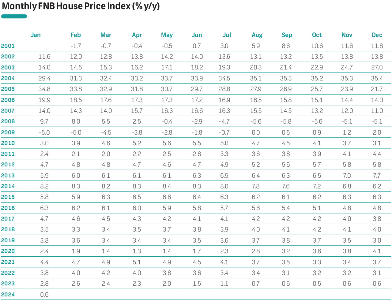 The index is compiled from FNB's own valuations database, thus based on the residential properties financed by FNB.