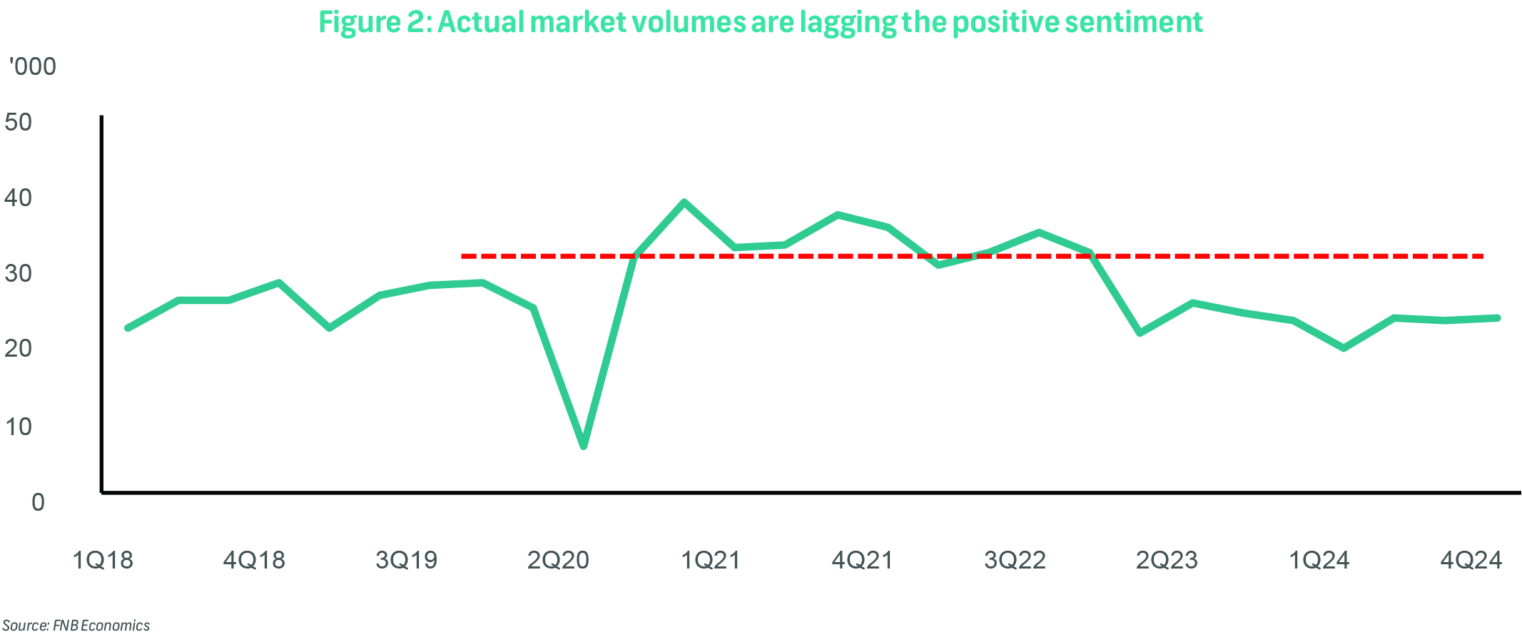 • Transaction volumes: Deeds Office data indicates that transaction volumes remain significantly (approximately 16%) below pre-pandemic levels (4Q19), suggesting a protracted recovery in market activity.