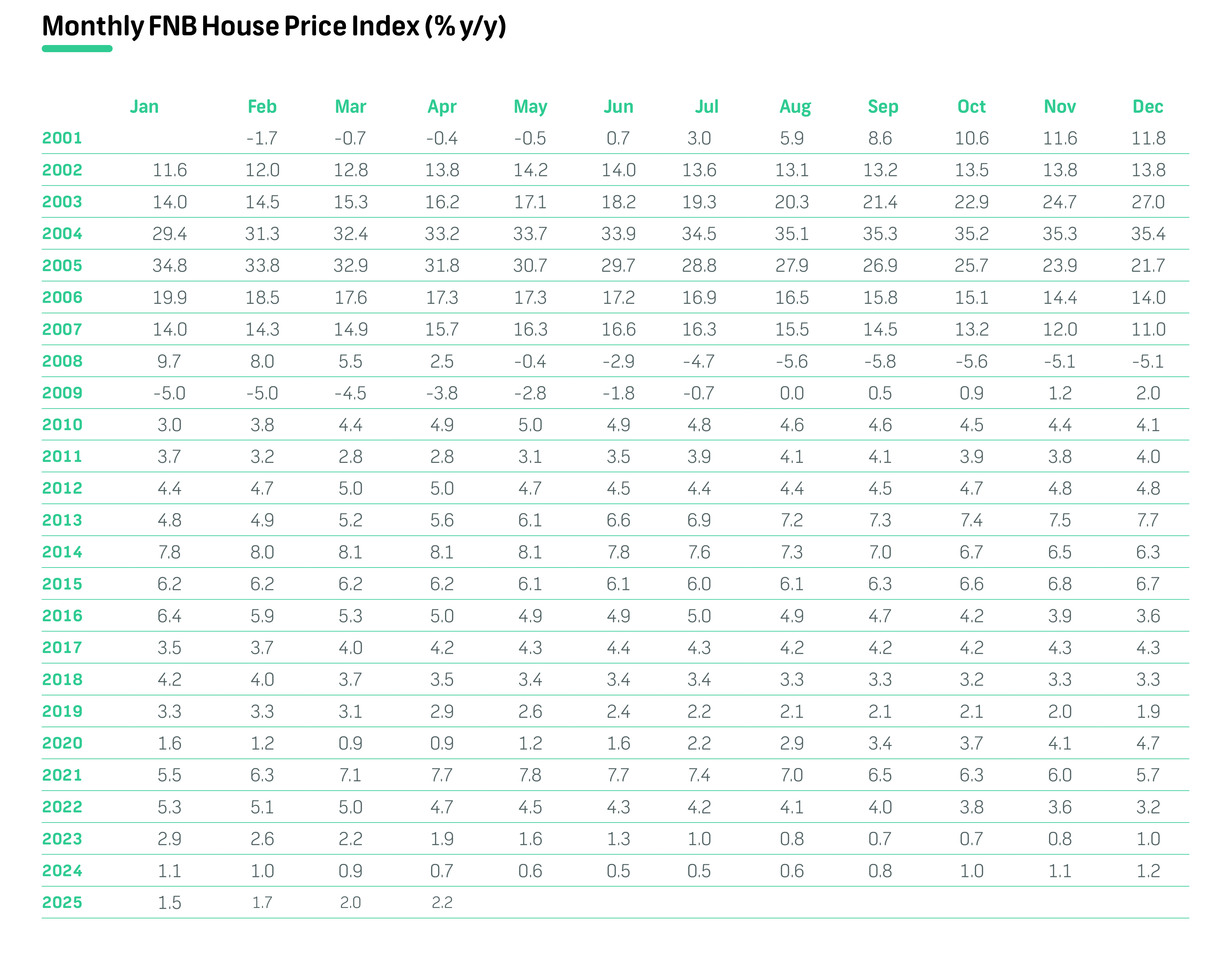 The index is compiled from FNB's own valuations database, thus based on the residential properties financed by FNB.
